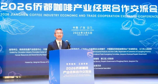 3月5日上午,2026侨都咖啡产业经贸合作交流会在江门市文化馆举行,粤味21·一城一站之江门侨都咖啡招商推介宣传周暨2026第四届中国侨都(江门)咖啡节正式启动。商务部驻广州特派办特派员尹虹出席会议,商务部流通产业促进中心主任王斌、体育博彩网址 厅长张劲松、江门市委书记陈杰、塞内加尔驻穗总领事阿达马·迪耶耶出席并致辞。